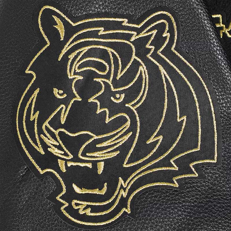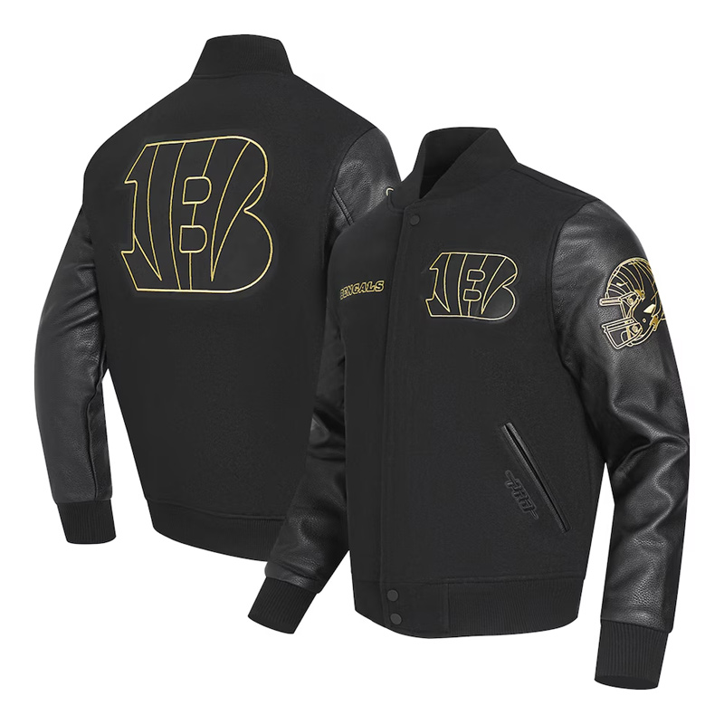 Show your Bengals pride with the Cincinnati Bengals Full-Zip Black Varsity Jacket. Perfect for game days or casual wear, this jacket celebrates the history and legacy of the Cincinnati Bengals.