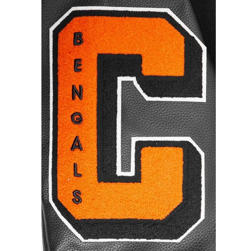 Show your Bengals pride with the Cincinnati Bengals Mashup Rib Varsity Wool/Leather Jacket. Perfect for game days or casual wear, this jacket celebrates the history and legacy of the Cincinnati Bengals with a premium wool and leather design.
