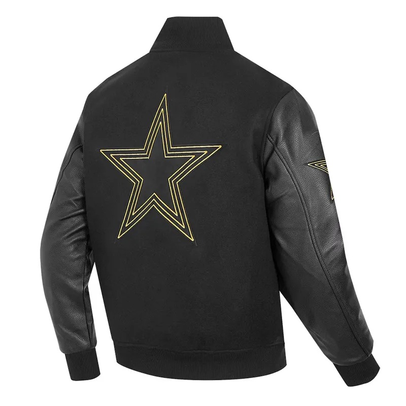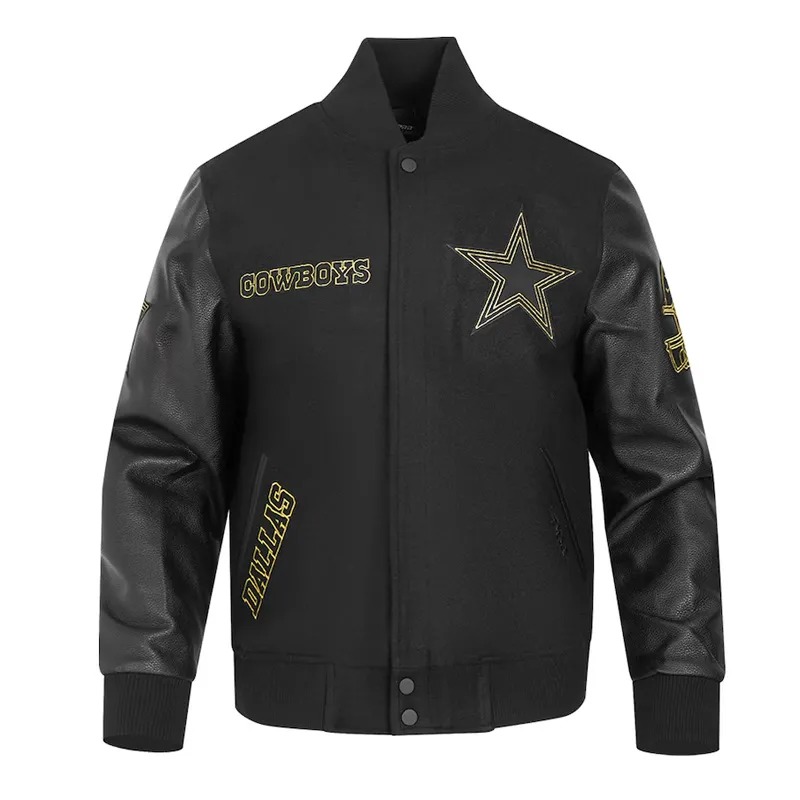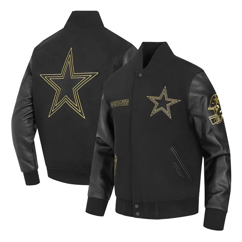 Show your Cowboys pride with the Dallas Cowboys Full-Zip Black Varsity Jacket. Perfect for game days or casual wear, this jacket celebrates the history and legacy of the Dallas Cowboys.