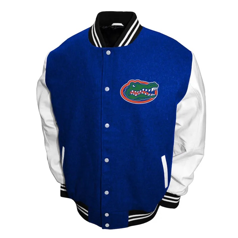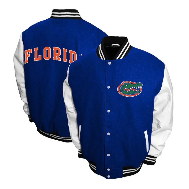 Celebrate your Florida Gators pride with this Graduate Varsity Jacket in royal and white. Perfect for alumni and fans, it combines classic collegiate style with a bold team look.