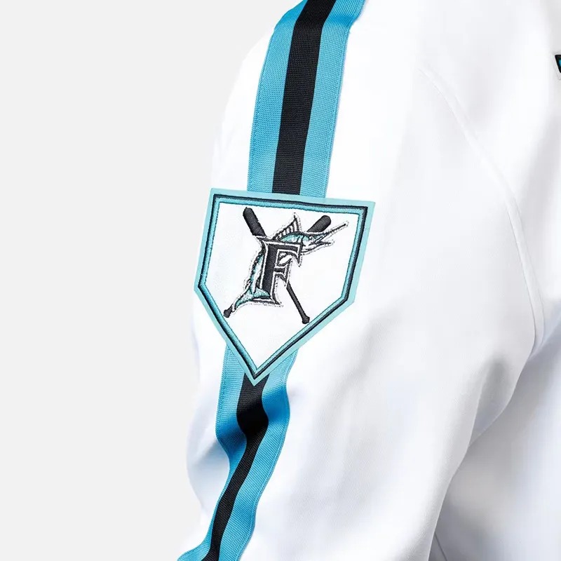 The Florida Marlins Logo Game Day White Jacket is a timeless piece for true baseball fans. Inspired by the early legacy of the Marlins, this jacket reflects team pride and classic MLB culture.