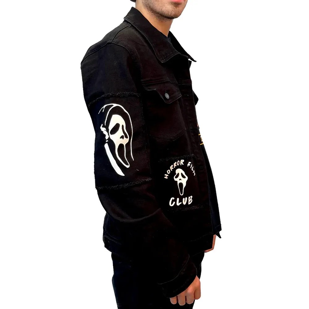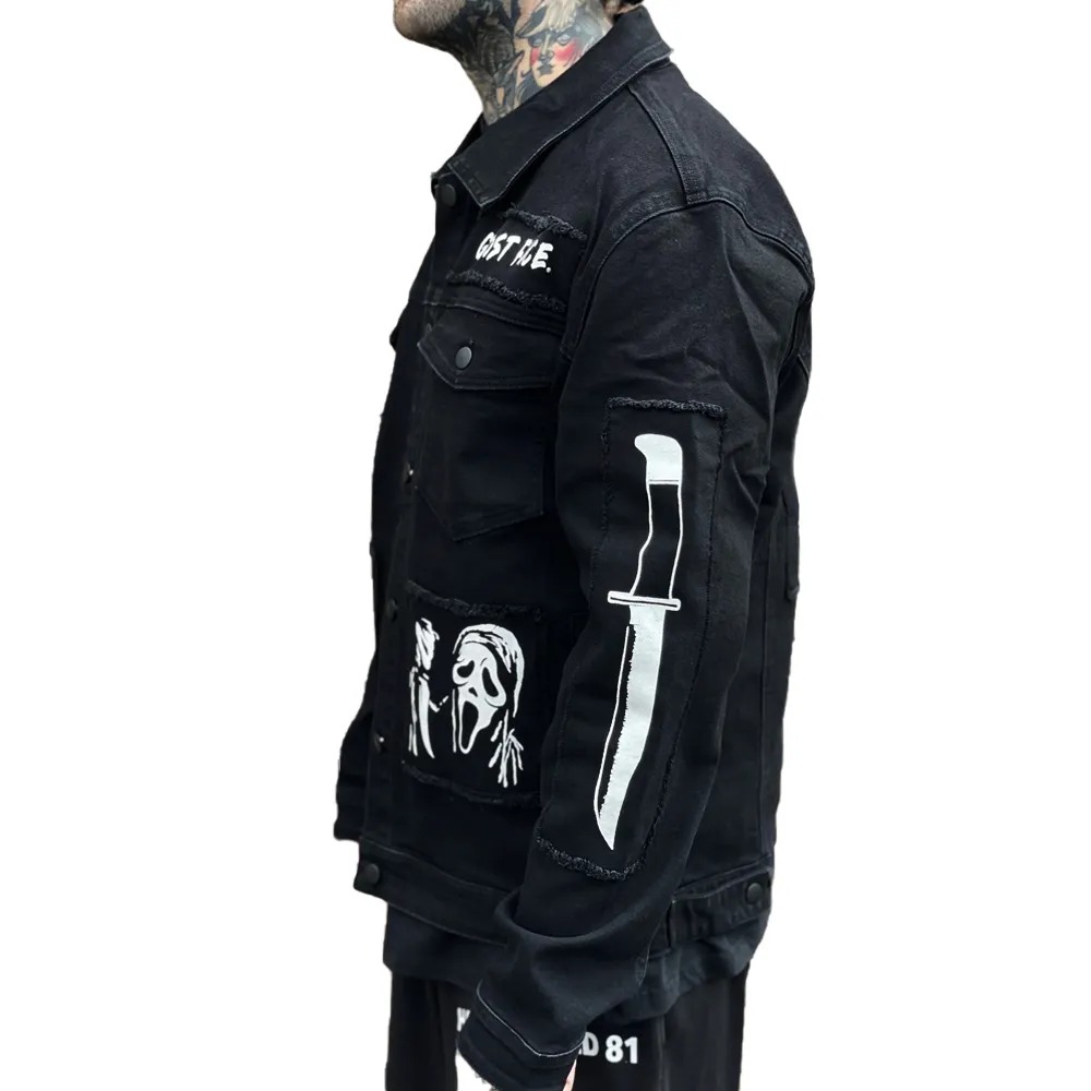 Show your love for classic slasher horror with the Ghostface Scream Slasher Grunge Punk Denim Jacket, inspired by the iconic Scream movies. Perfect for fans, punk fashion enthusiasts, and Halloween events.