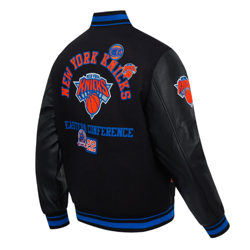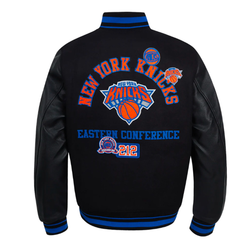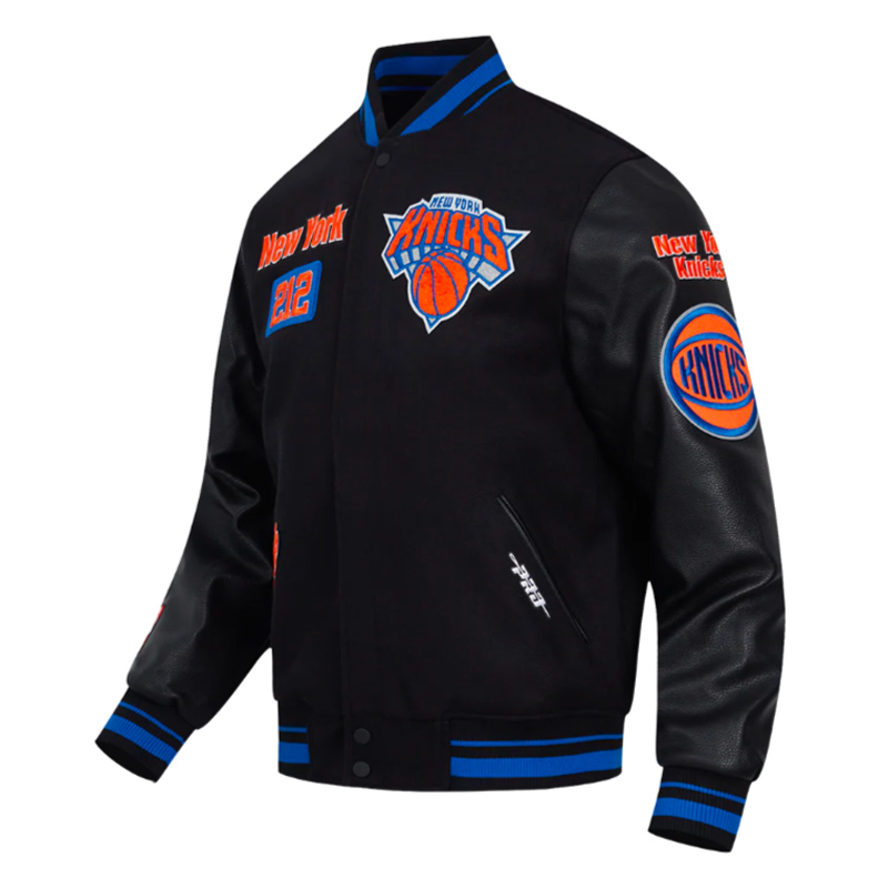 The NY Knicks Area Code Classic Rib Varsity Jacket celebrates New York pride and the historic legacy of the Knicks with a classic varsity design.