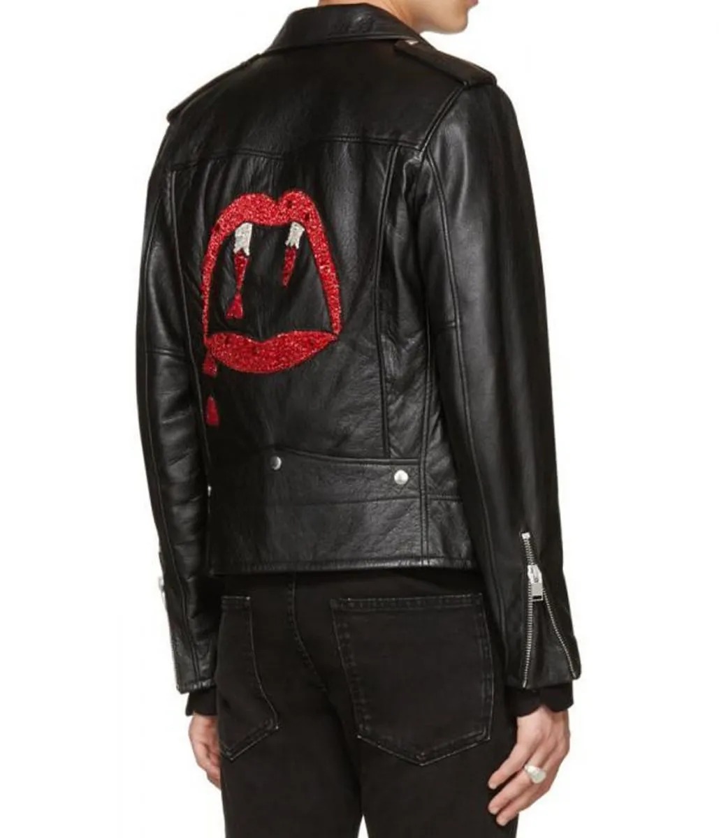 The Red and White Beading Blood Luster Biker Jacket delivers a dramatic blend of rebellious biker culture and striking gothic aesthetics, designed for those who embrace fearless fashion.