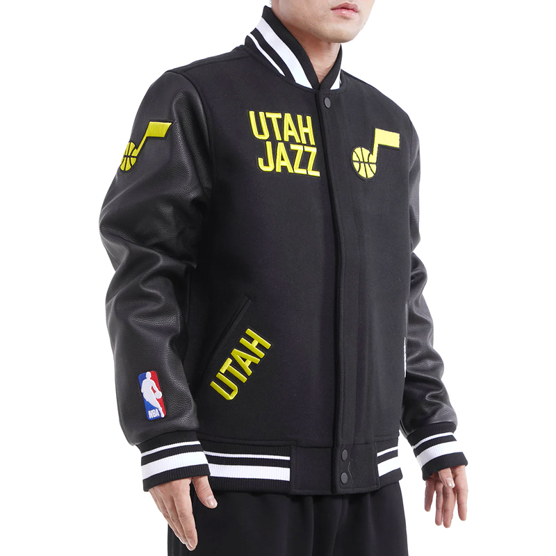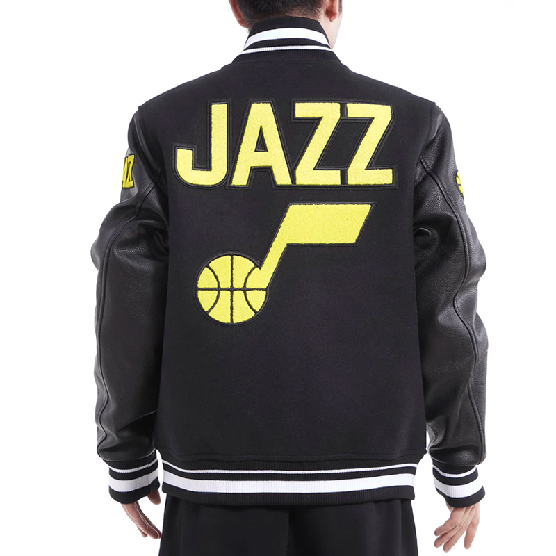 The Retro Utah Jazz Classic Rib Varsity Jacket reflects the rich basketball history of the Jazz, blending vintage NBA identity with timeless varsity tradition.