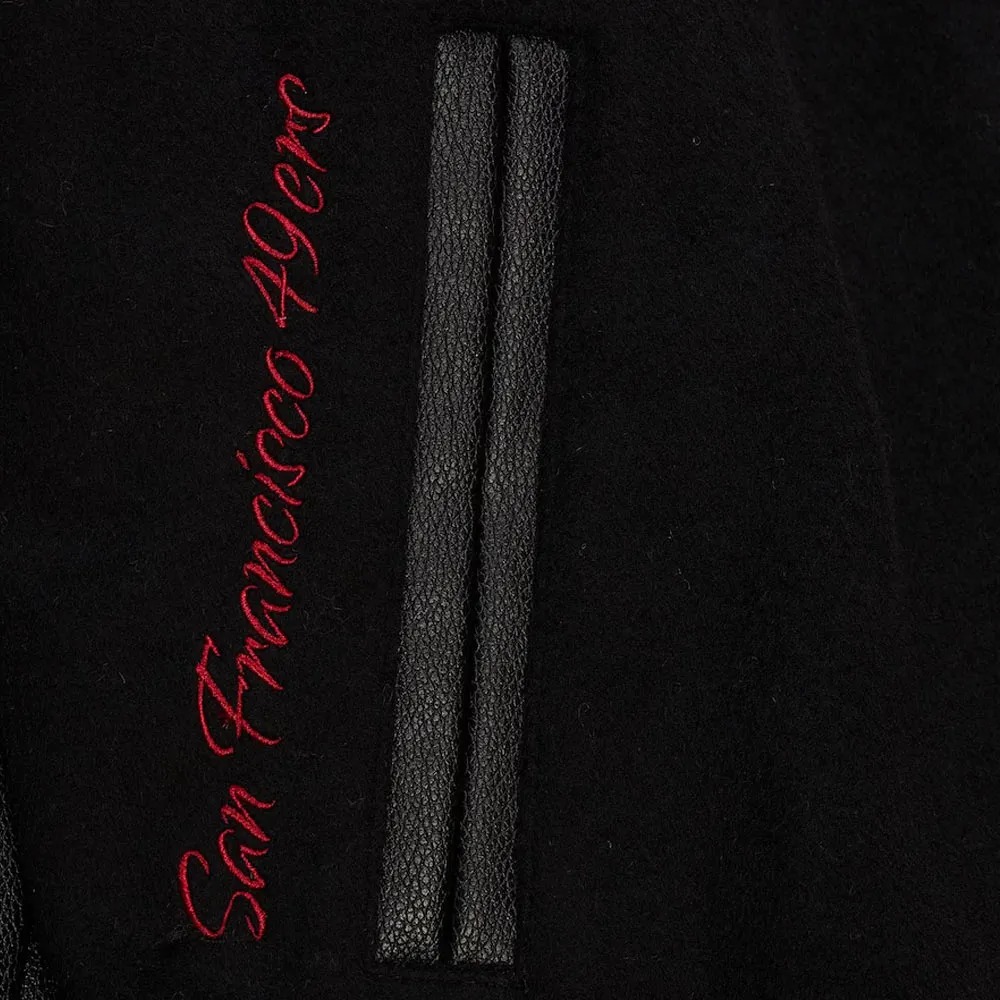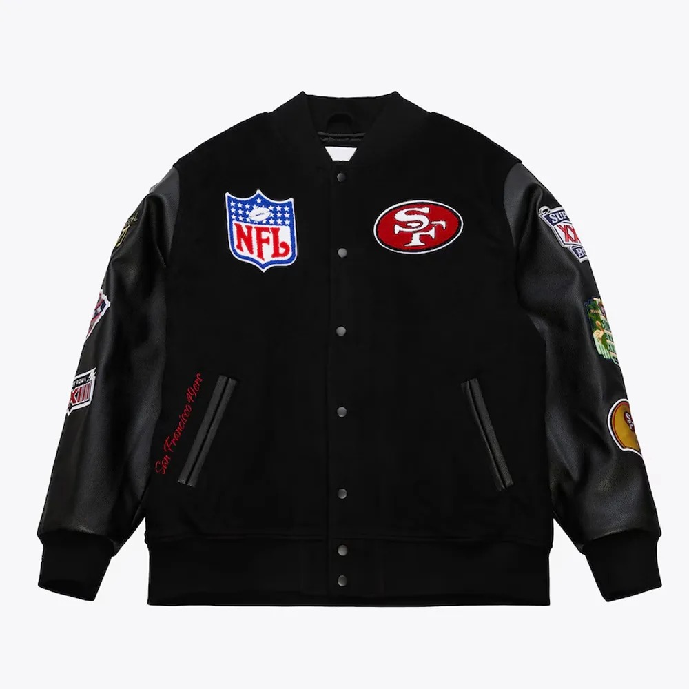 The San Francisco 49ers Blackout Vintage Logo Varsity Jacket blends classic American sports heritage with a bold modern blackout aesthetic. Designed for fans who appreciate timeless varsity style, this jacket represents decades of football culture and streetwear influence.