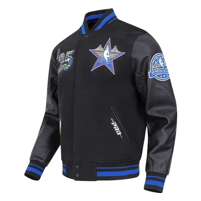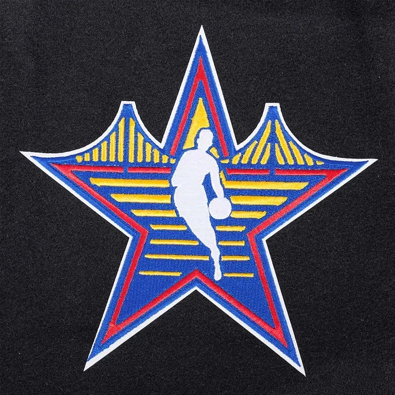 The San Francisco Bay Area All-Star Game Varsity Jacket celebrates the NBA All-Star Game hosted in the Bay Area with classic varsity styling and commemorative design for basketball fans.